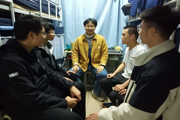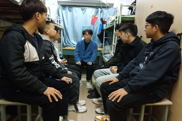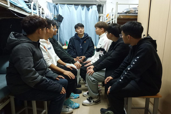 学生党员黄建树交流宿舍卫生情况