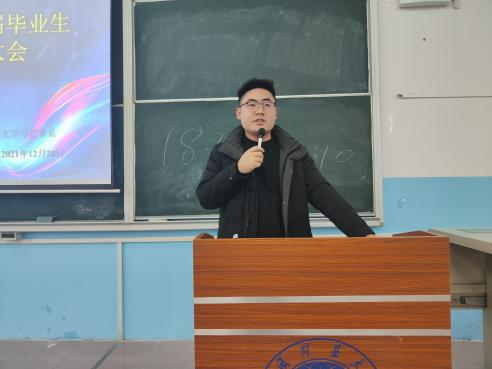 会议最后,大四辅导员王勇老师向同学们再次着重强调了毕业前的各项重要时间点,提醒各位同学不可懈怠,要树立责任意识,希望大家能尽早按照社会人的标准要求自己,同时祝愿同学们能完成一篇高质量的毕业论文,在大学的最后时光里迎来属于自己的高光时刻,不负青春,不负韶华