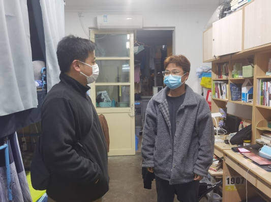 通过走访宿舍,老师们听取同学们的心声,了解他们的情况以及实际需求,为接下来的学院的防疫及教学、管理稳步推进打下了良好基础。特殊时期的寝室走访,也让同学们深切感受到温暖和关怀。(撰稿人:毕浩明)