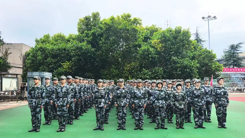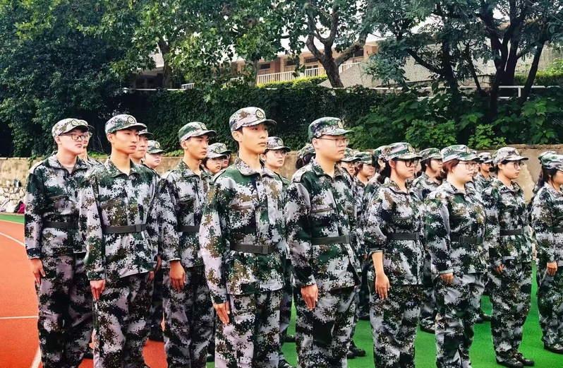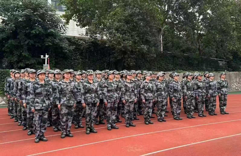 晨光初露,操场之上,新生身着迷彩服静立成列。从脊背挺直、双肩后张到目光平视,每一处细节皆按标准校准。时间流转,汗水沿脸颊滑落、浸透衣背,无人随意挪动。在这份静态坚持里,他们褪去青涩浮躁,锤炼出直面疲惫的耐力与沉下心来的定力。