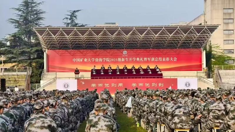 视觉传达设计专业军训合影9月30日上午,中国矿业大学徐海学院2025级新生军训在文昌校区运动场圆满结束,历经数日的骄阳与汗水洗礼,文艺系2025级新生凭借出色表现,荣获徐海学院军事技能训练二等奖,为系部赢得了荣誉。