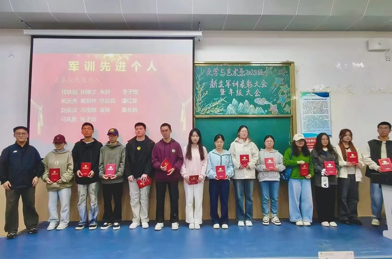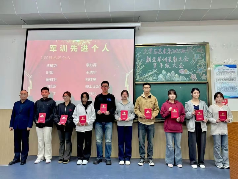 此次活动,既是对2025级新生军训成果的总结,也为新生开启大学生活注入了动力。相信在文艺系各位老师的陪伴与引导下,文艺系25级新生将以军训为起点,以先进为榜样,在未来的学习与生活中展现新担当、实现新成长。