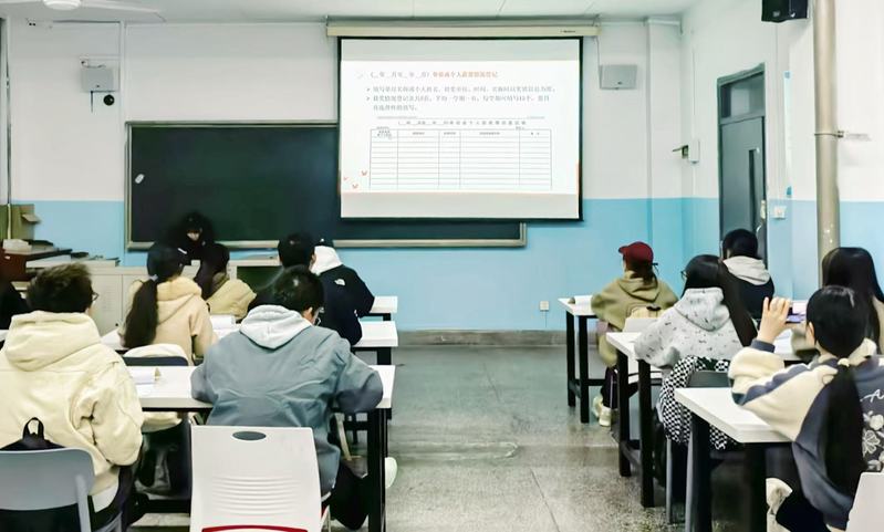 首先,徐梦阐释了成长手册的核心内涵,强调其不仅是团务工作的记录载体,更是规范工作流程、助力团干部履职尽责的重要抓手。她结合文艺系工作特色和手册填写的注意事项,细致讲解内容撰写的核心要求与格式规范,并用案例展示来点明易错点,为新团支书准确填写手册、扎实开展工作提供了清晰实用的操作指引。