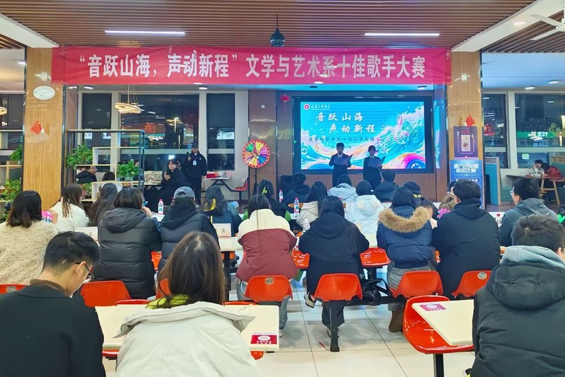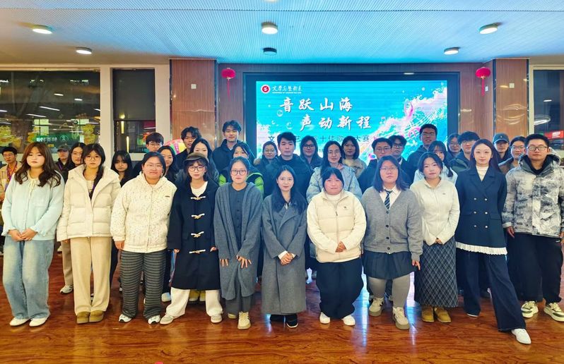 大合照为丰富校园文化生活,展现同学们的青春风采,11月21日晚,文艺系在嘉园餐厅成功举办“音跃山海,声动新程”十佳歌手大赛。文艺系2025级辅导员鲁萍,2023级辅导员、团总支书记杨安华,2025级兼职辅导员张天平以及团总支、学生会、青协主席团担任比赛评委,2025级新生班主任助理作为活动嘉宾参与本次活动。