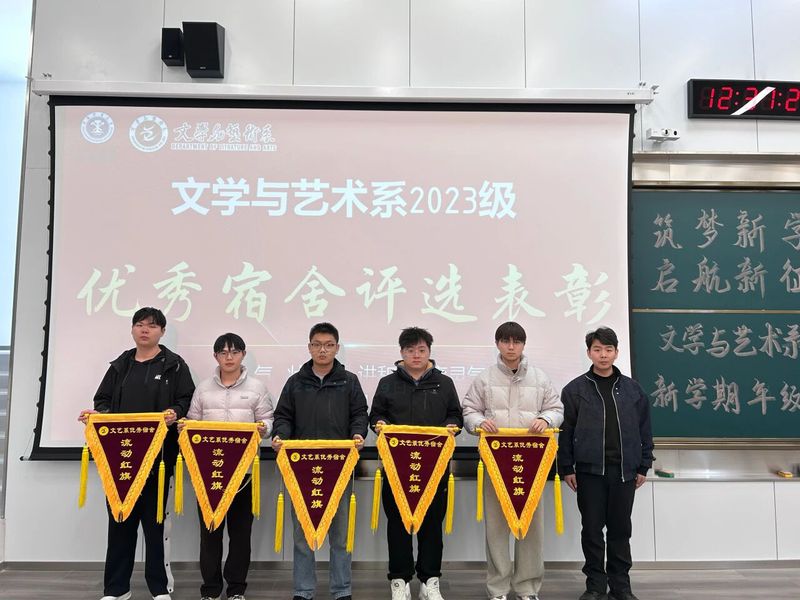 在优秀宿舍表彰会上,杨安华公布了获奖名单,为大家在宿舍卫生和安全管理上的用心付出点赞。他鼓励获奖宿舍继续保持这份整洁与自律,当好身边同学的榜样,一起把宿舍小家建设得更温馨安全。最后,他依次为获奖宿舍颁发流动红旗。
