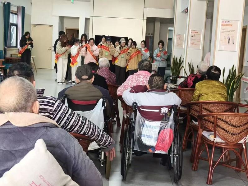 志愿者们准时集结抵达护理院,本次活动设置三大暖心环节,现场洋溢温馨氛围,处处充满欢声笑语。首先是志愿者唱响合唱《荷塘月色》,悠扬旋律打动老人,大家跟着轻哼打节拍,歌声温柔动人,笑容真挚灿烂,现场瞬间暖意融融。