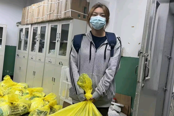 防控第一天,刘盼等同学承担核酸检测相关工作。检测现场,志愿者们早早来到岗位上,做好自我防护,从主楼搬桌子到学三楼下,领物资,贴好间隔线,与医护人员互帮互助。在志愿者挨个宿舍楼层的提醒下,检测工作有序展开。同时,工作的正常运转也离不开老师们的指导,同学们的配合。病毒无情人有情,学院在封校期间发放了口罩与餐券,学院领导们的关心关怀送到了全体学生的心坎上。