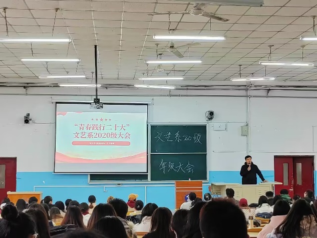 为深入学习贯彻党的二十大精神,进一步加强青年学生思想政治引领,文艺系各年级召开了年级大会和主题班会。