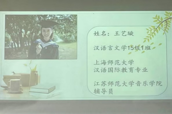 交流会初,王艺璇校友首先进行了自我介绍:从中国矿业大学徐海学院汉语言文学专业本科毕业,并在大四期间同时通过了研究生考试和教师编制考试,后选择在上海师范大学读研,研究生毕业后又考取了江苏师范大学音乐学院辅导员岗位。然后又结合自身大学经历,告诉我们要抓住“关键期”,要在学习方面张弛有度,心态放平不挂科;生活方面享受生活,多游历重体验。最后给同学们讲述了考试、求职等经历,并说明了自己的见解和方法。