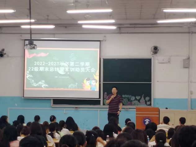 文艺系于2023年6月24日下午5时在一南101召开了军训动员大会,本次会议由文艺系学工办主任、22级辅导员朱宁,22级辅导员刘迎澳、张轩硕三位老师主讲,文艺系22级全体学生参会。