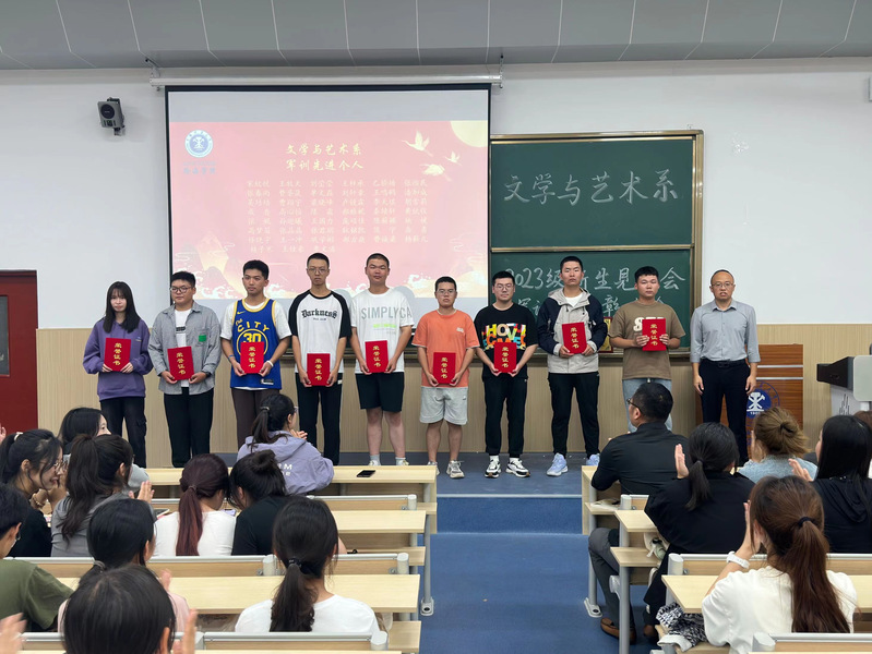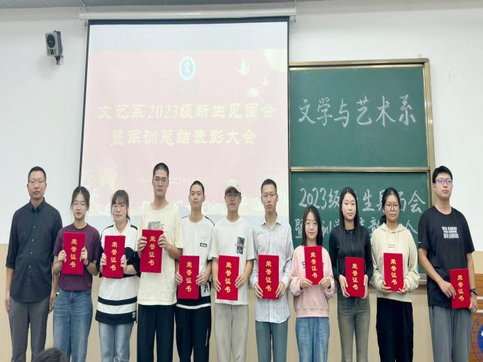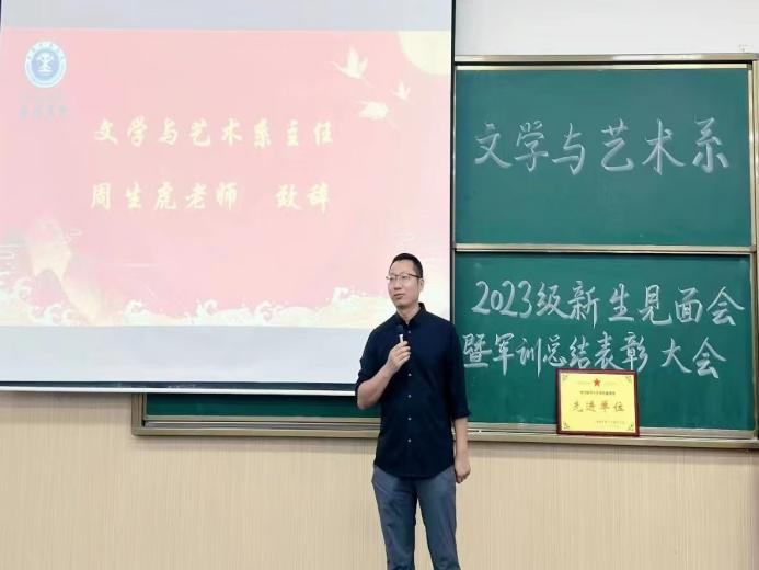 为了发扬军训优良作风、鼓励新生积极进取、努力学习,文艺系于9月27日上午在教一南101教室举行了2023级新生见面会暨军训总结表彰大会。文艺系主任周生虎老师、系副主任宁敏老师、系学工办主任朱治橙老师、23级辅导员杨安华老师、21级各班新生班主任以及全体23级新生出席本次大会。