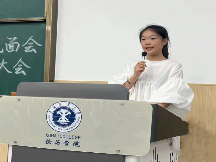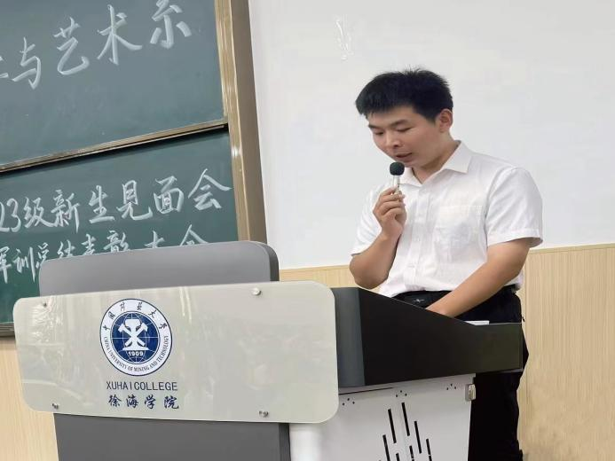 大会由辅导员杨安华老师主持,首先杨老师就长达12天的军训进行了总结,并宣布大会正式开始,全体起立,奏唱国歌。随后,朱治橙老师宣读关于学院和系部表彰2023级军训先进集体和个人的决定,周生虎主任为院级先进个人和先进班集体颁奖、宁敏主任为系级军训先进班集体、军训优秀助训教官、优秀宿舍颁奖,朱治橙主任为系级军训先进个人颁奖。12天的军训已落下帷幕,军训是新生们跨入徐海生活的第一课,在人生中是一个刻骨铭心的瞬间,23级新生代表吴琼对于此次军训表达了自己的感想与收获,分享了坚强意志的塑造是崭新自我的开始,应以实际行动来诠释青春真谛,秉承军魂精神,开创文艺新篇章。最后,系主任周生虎老师对此次新生见面会暨军训总结表彰大会进行总结讲话,动员新生在大学认真学习,突破自我。永远铭记教官们的深情厚谊,牢记师长们的身教言传,在以后的学习和生活中,严格要求自己,实现自我的人生价值。