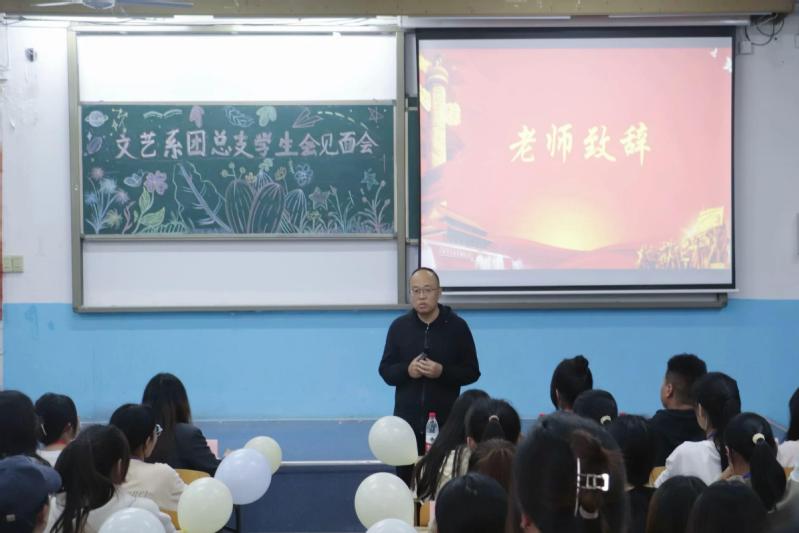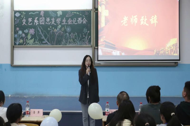 2023年10月11日中午12点30分,为增强系团总支、学生会内部工作的沟通交流,文艺系于主南一召开第十八届团总支、学生会见面大会。本次大会参加的嘉宾有:文艺系学工办主任朱治橙老师、系团总支书记鲁萍老师、系团总支副书记、系学生会主席、各部门部长以及新生干事。
